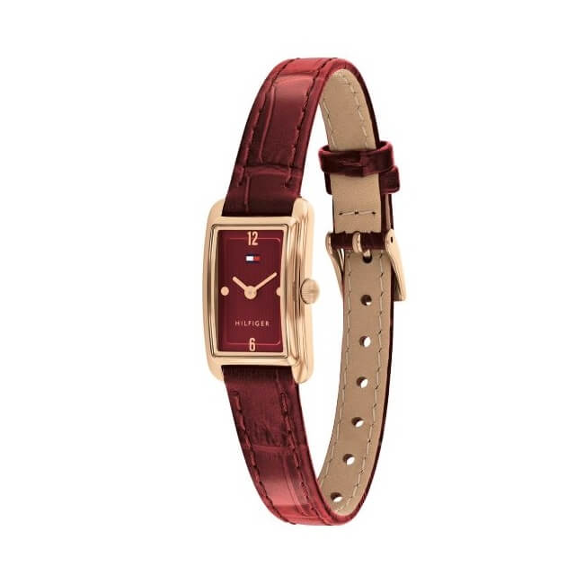 Γυναικείο ρολόι TOMMY HILFIGER τετράγωνο με κόκκινο λουράκι