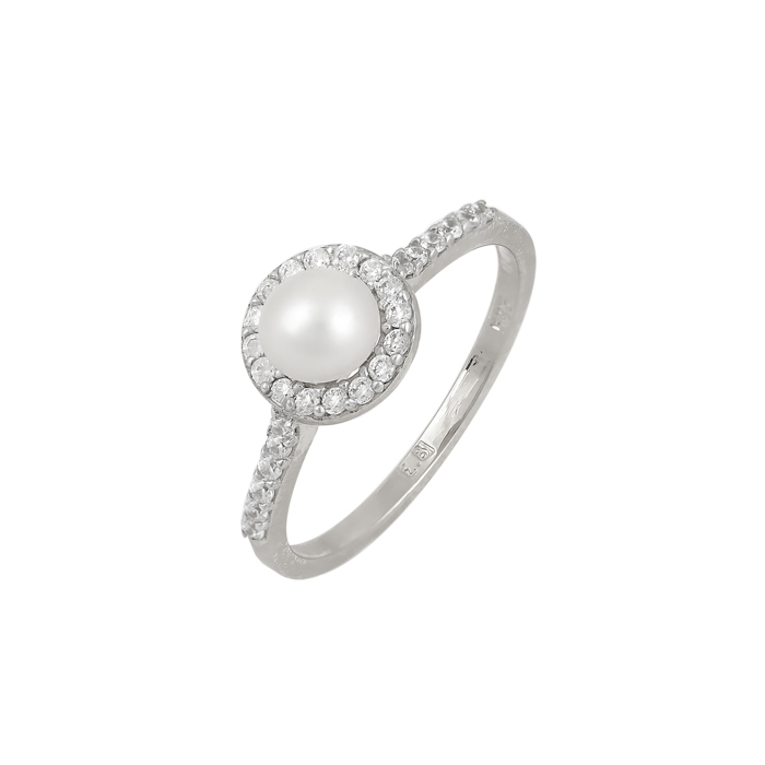 Δαχτυλιδι σε λευκό χρυσό Κ14 σχεδιο ροζέτα με μαργαριτάρι