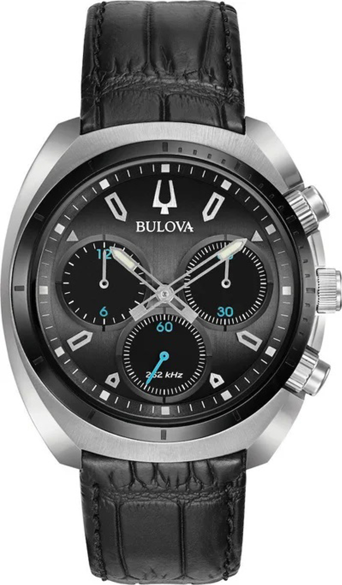Ανδρικό ρολόι bulova 98A155 curv με σκούρο γκρι καντράν και μαύρο δερμάτινο λουρί.