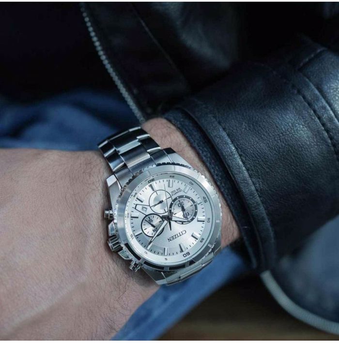 Ρολόι Citizen AN8200-50A CHRONOGRAPH από ανοξείδωτο ατσάλι με ασημί καντράν και μπρασελέ.