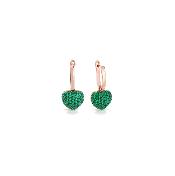 Σκουλαρίκια κρεμαστά με μαύρες και λευκές πέτρες ζιργκόν σε ροζ χρυσό Κ14