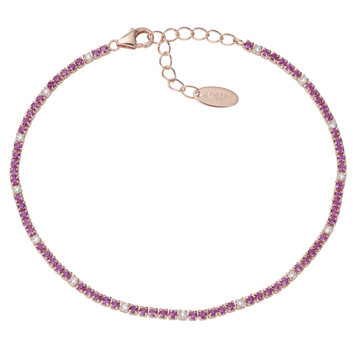 Βραχίολι ασημένιο με ροζ επιχρυσωμα και με κόκκινες και λευκές πέτρες σε σχεδιο ριβιέρα