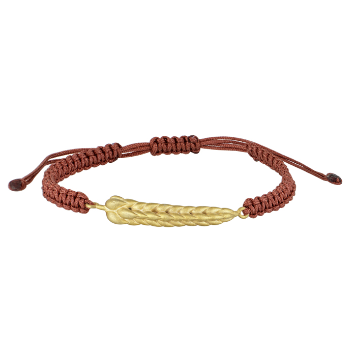 Βραχιόλι στάχυ από επιχρυσωμένο ασήμι 925 με καφε κορδόνι.