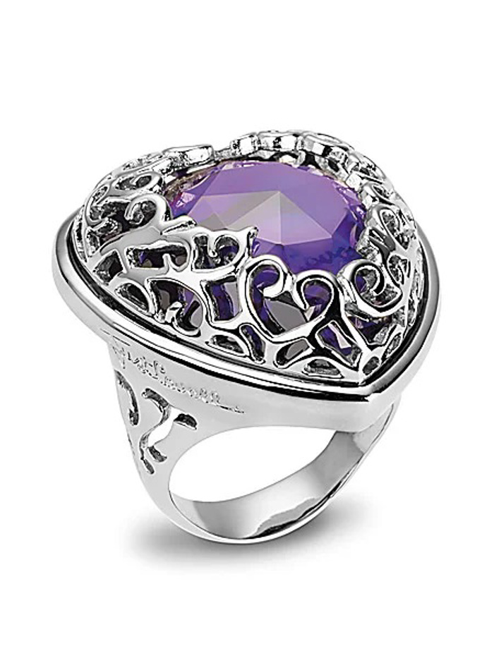 Γυναικείο δαχτυλίδι καρδιά διακοσμημένο με μωβ πέτρα ζιργκόν από τον οίκο just cavalli σε ανοξέιδωτο ατσάλι.