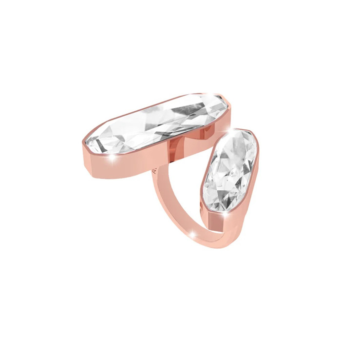 Γυναικείο μοντέρνο δαχτυλίδι διακοσμημένο με οβάλ λευκές πέτρες ζιργκόν από τον οίκο rebecca κατασκευασμένο στην ιταλία από επιχρυσωμένο ανοξέιδωτο ατσάλι και έχει δύο χρόνια εγγύηση.