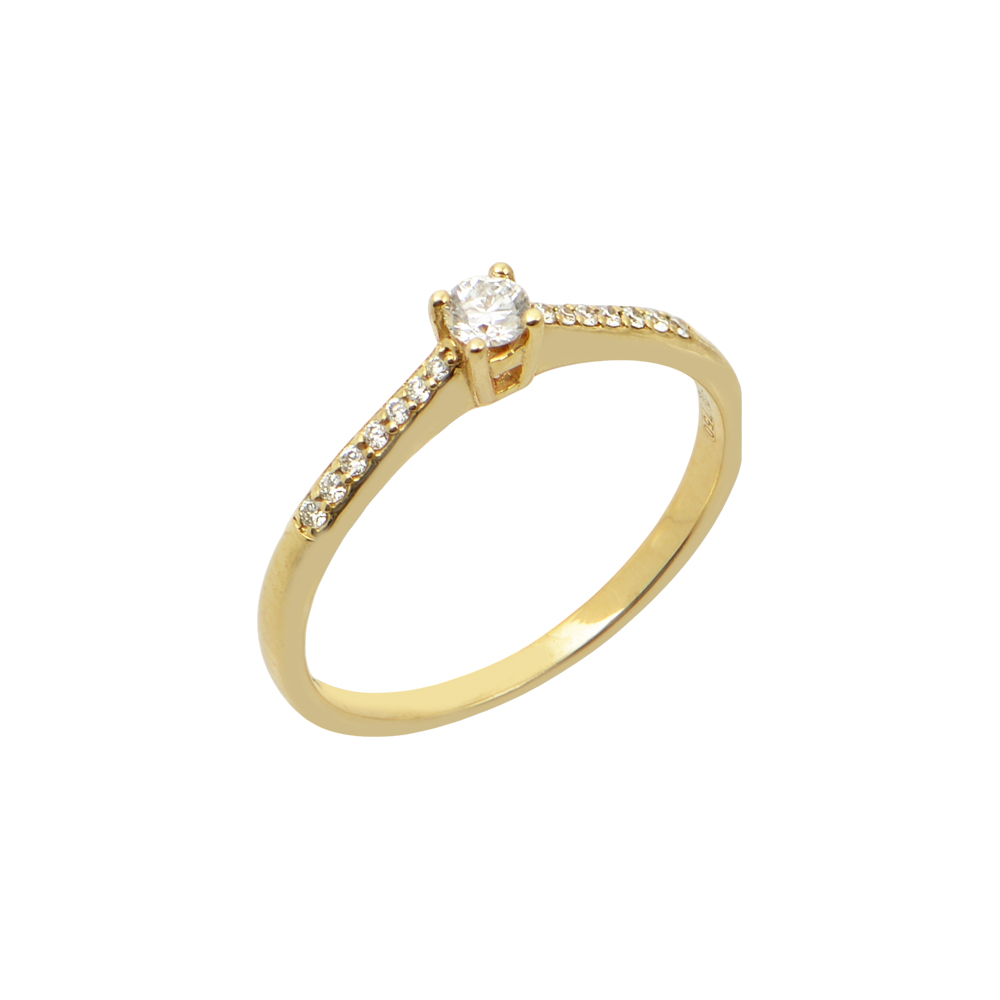 Δαχτυλίδι μονόπετρο σε κίτρινο χρυσό Κ18 με διαμάντια στο πλάϊ