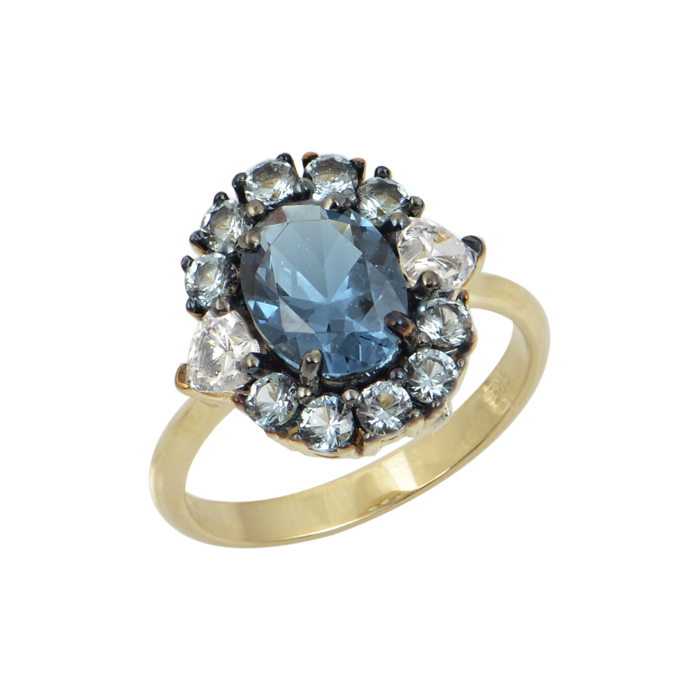 Δαχτυλίδι ροζέτα vintage με μπλε πέτρα ζιργκόν σε κίτρινο χρυσό Κ14