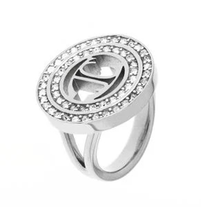 Γυναικείο δαχτυλίδι στρογγυλό διακοσμημένο με λευκές πέτρες ζιργκόν από τον οίκο just cavalli σε ανοξέιδωτο ατσάλι.