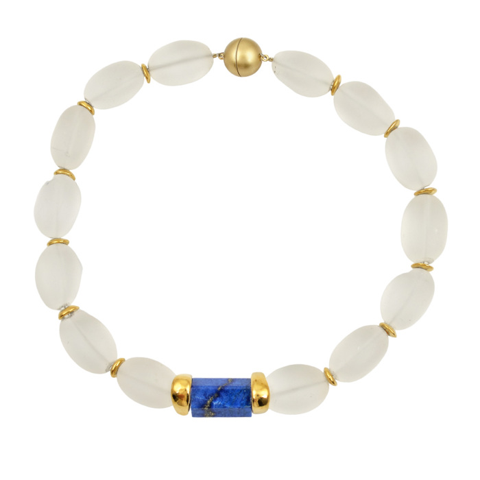 Κολιέ δεμένο με quartz και lapis lazulis με επιχρυσωμένα κεραμικά στοιχεία