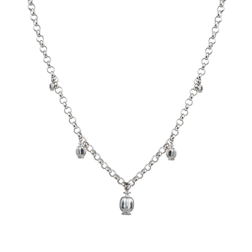 Κολιέ ασημένιο με τα 3 μεγέθοι της κλειστής παπαρούνας