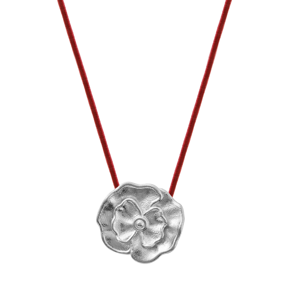 Κολιέ με κόκκινο κορδόνι με ασημένια παπαρούνα