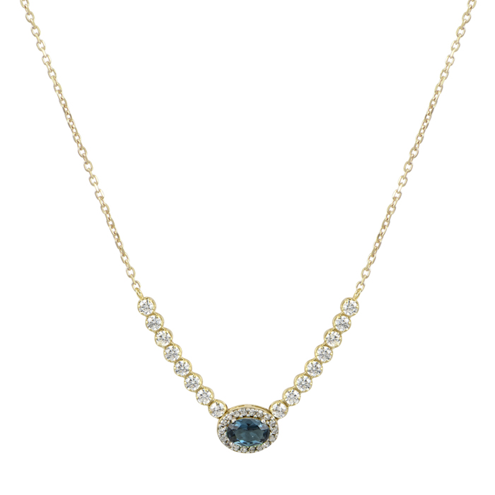 Κολιέ κίτρινο χρυσό Κ14 με σχέδιο ριβιέρα στολισμένο με μπλέ οβάλ κέντρο και πέτρες ζιργκον