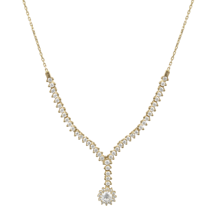 Κολιέ κίτρινο χρυσό με σχέδιο ριβιέρα γραβάτα με ροζέτα απο λευκά ζιργκον