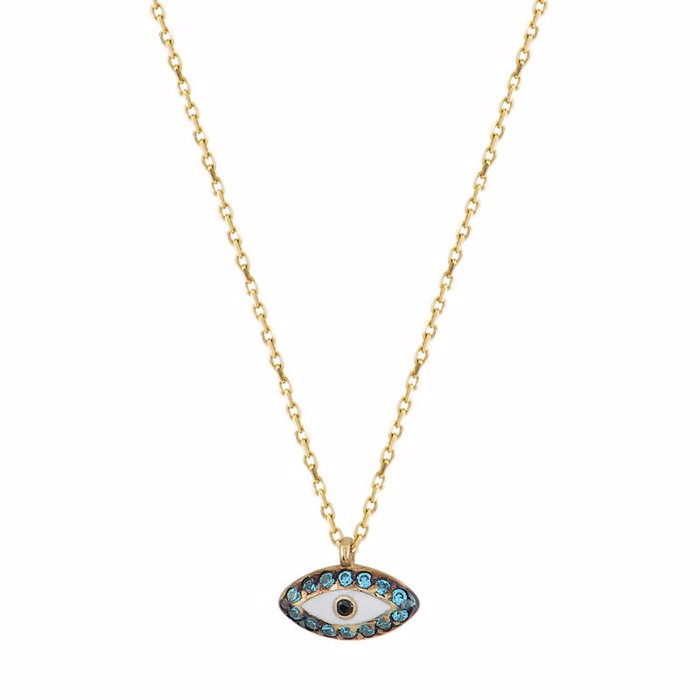 Κολιέ με αμυγδαλωτό ματάκι που διακοσμείται με αστραφτερά μπλε ζιργκόν και σμάλτο σε κίτρινο χρυσό Κ14