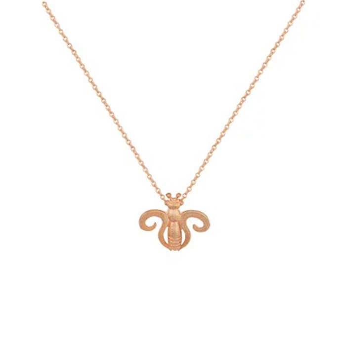 Γυναικείο κολιέ με μενταγιόν σε σχήμα μέλισσα από ροζ επιχρυσωμένο ασήμι με καδένα 45cm. Η μέλισσα είναι άρρηκτα συνδεδεμένη με την ελευσίνα, μέλισσες ονομάζονταν οι ιέρειες της θεάς δήμητρας τροφοδότριες και προστάτιδες της μεγάλης θεάς.
