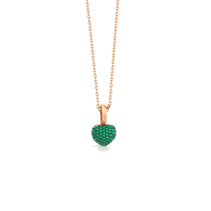 Γυναικείο κολιέ με μοτίφ σε σχήμα καρδιά διακοσμημένο με πράσινες πέτρες ζιργκόν από τον οίκο sogni της σειράς extraordinari κατασκευασμένο στην ιταλία από επιχρυσωμένο ασήμι και έχει δύο χρόνια εγγύηση.