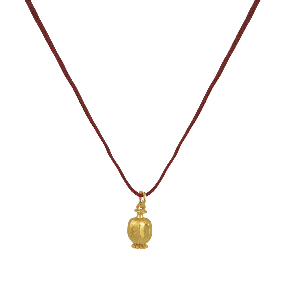 Κολιέ με μπορντό κορδόνι με ασημένια επίχρυση μεγάλη κλειστή παπαρούνα