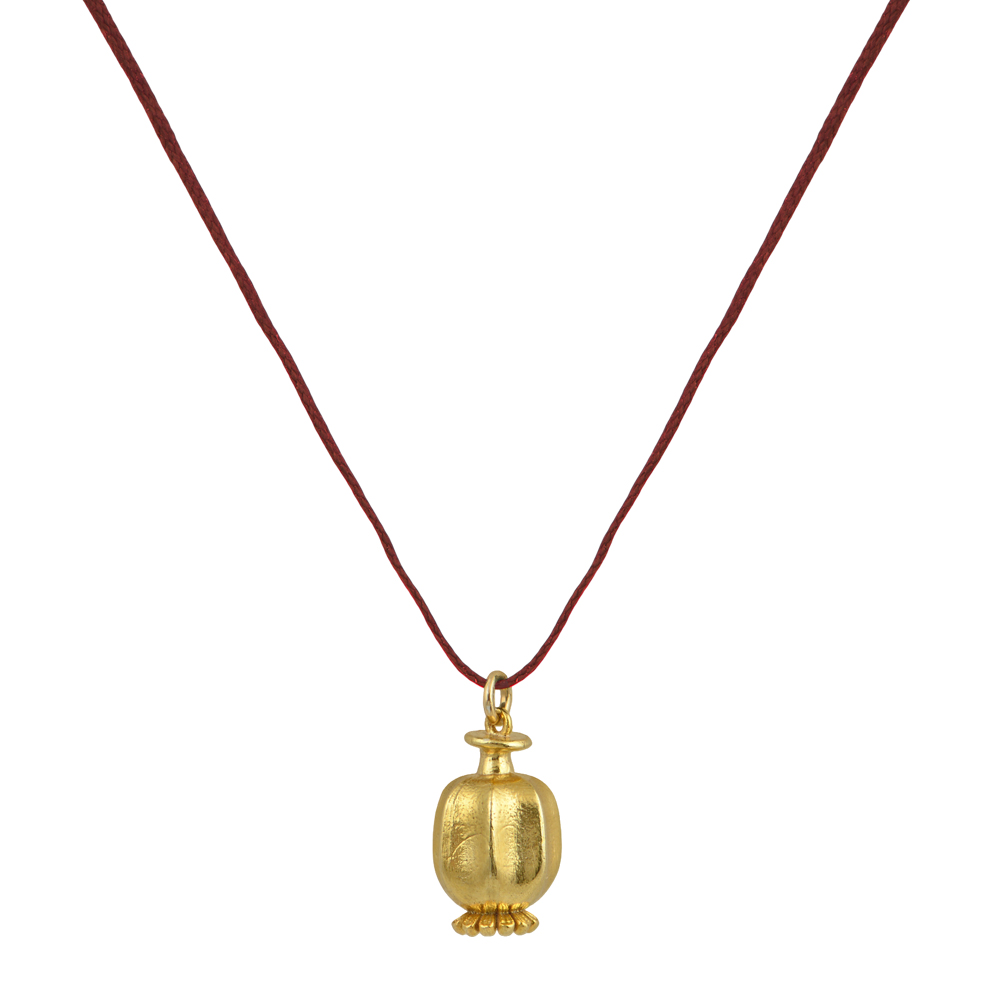 Κολιέ με μπορντό κορδόνι με ασημένια επίχρυση μεσαία κλειστή παπαρούνα
