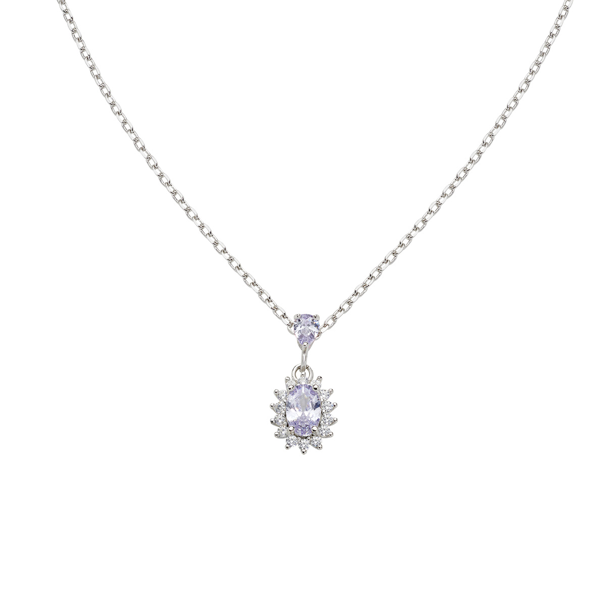 Κολιέ ροζέτα ασημένιο με λιλά πέτρα ζιργκόν