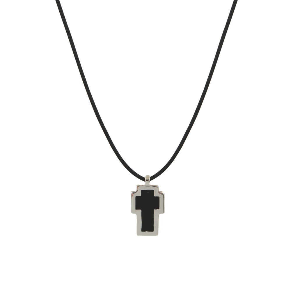 Κολιέ με κορδόνι με μαύρο σταυρό σε λευκό χρυσό