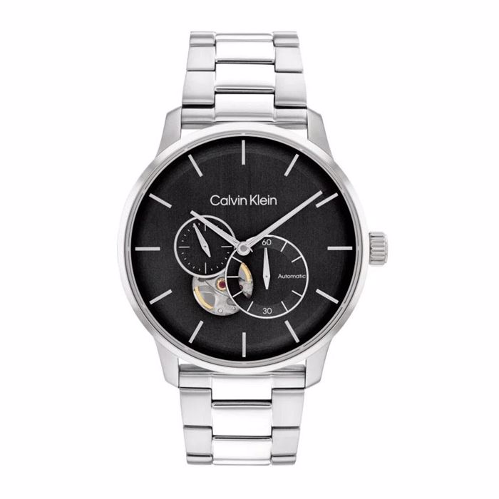 Ανδρικό ρολόι calvin klein 25200148 automatic με μαύρο καντράν και μπρασελέ από ανοξείδωτο ατσάλι.