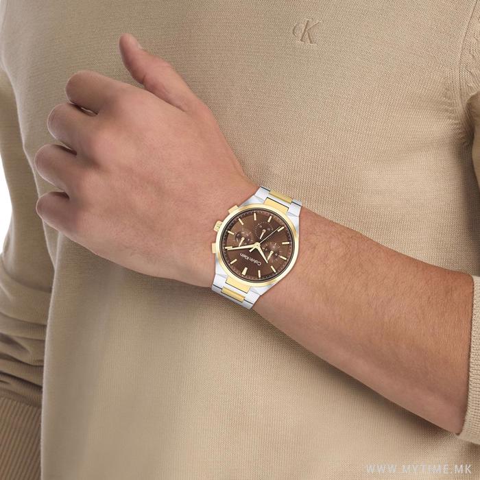 Ρολόι Calvin Klein 25200442 με καφέ καντράν και επίχρυσο μπρασελέ