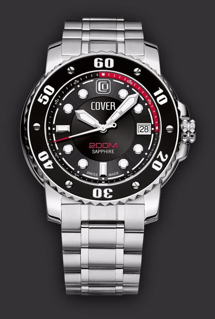 Ανδρικό ρολόι cover switzerland Co145.07 με μαύρο καντράν και μπρασελέ από ανοξείδωτο ατσάλι.