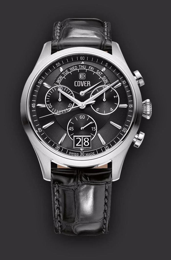 Ανδρικό ρολόι cover switzerland Co170.10 με μαύρο καντράν και μαύρο δερμάτινο λουρί.