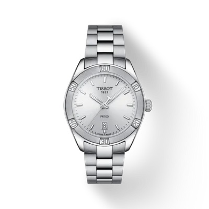 Γυναικείο ρολόι tissot T101.910.11.031.00 pr 100 sport chic με ασημί καντράν και μπρασελέ από ανοξείδωτο ατσάλι.