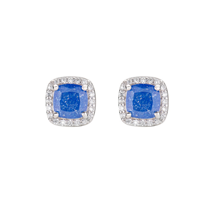 Σκουλαρίκια ασημένια καρφωτά σχέδιο ροζέτα με λευκές πέτρες και μπλε κέντρο
