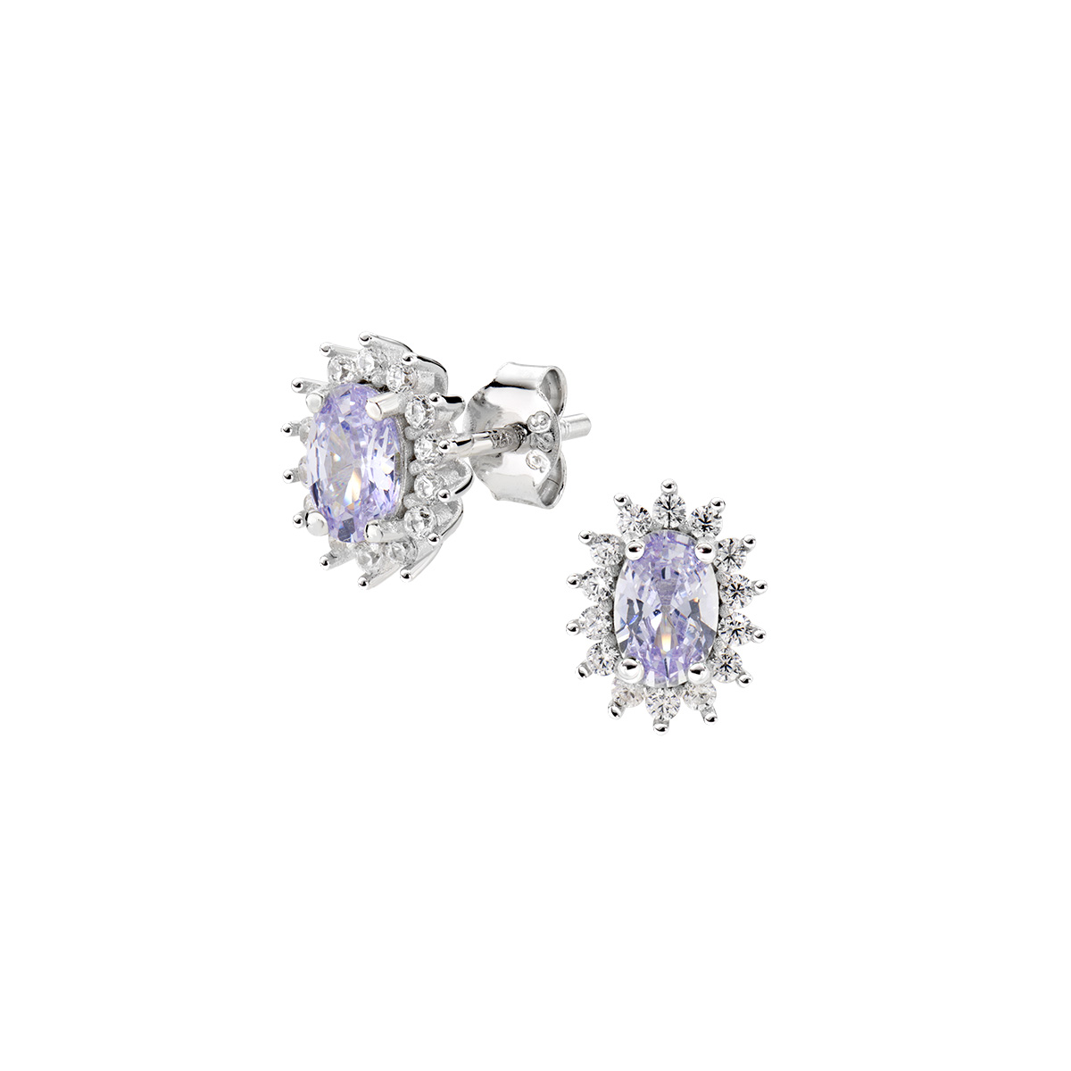 Σκουλαρίκια ασημένια ροζέτα με πέτρα ζιργκόν λιλά