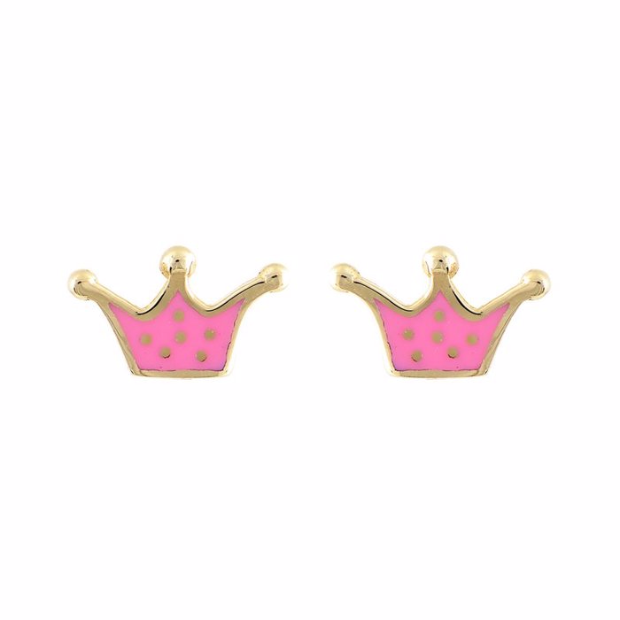 Σκουλαρίκια κορώνα με σμάλτο σε κίτρινο χρυσό Κ14. Ιδανικό για δώρο ή βάπτιση.