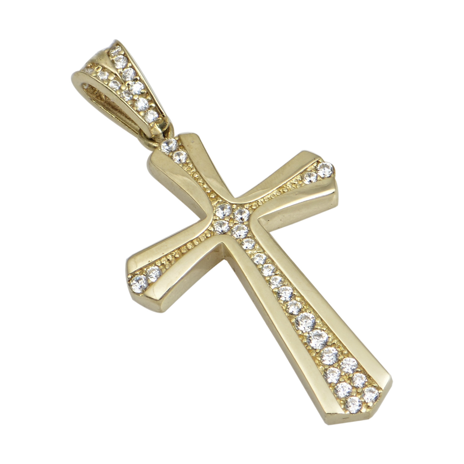 Σταυρός γυναικείος με ζιργκόν σε κίτρινο χρυσό Κ14 με κομψίματα