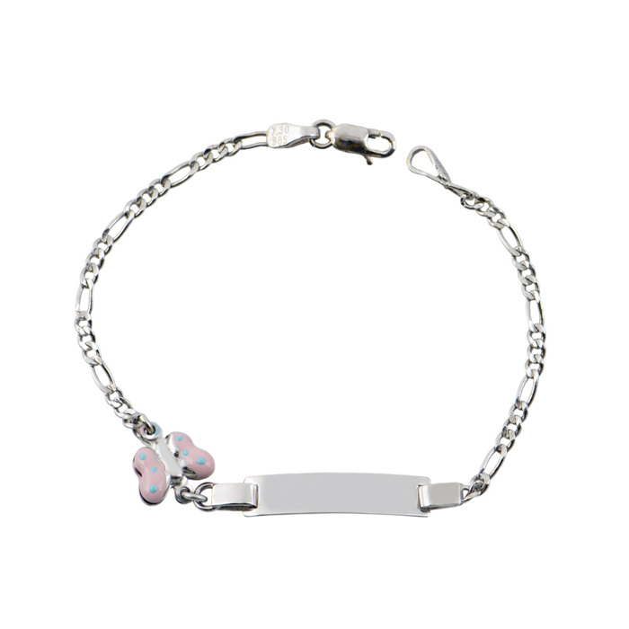Ταυτότητα με πεταλούδα ροζ σμάλτο σε λευκό χρυσό Κ14