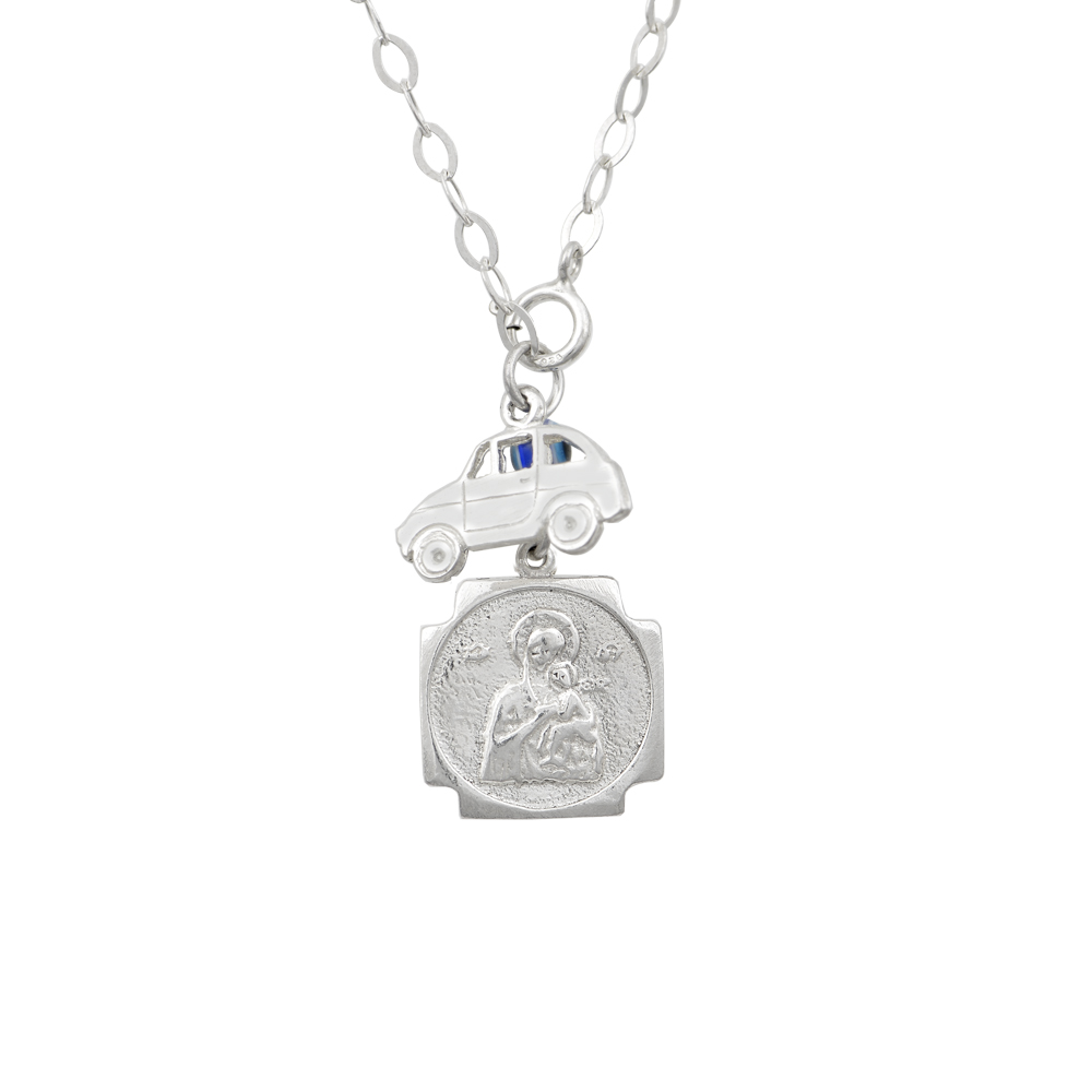 Φυλαχτό ασημένιο με τον Άγιο Χριστόφορο σε σχήμα τετράγωνο,με αμαξάκι και μάτι.