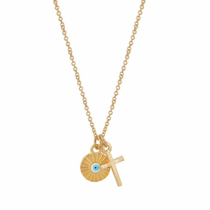 Φυλαχτό αυτοκινήτου από επιχρυσωμένο ανοξείδωτο ατσάλι με σταυρό και μάτι.